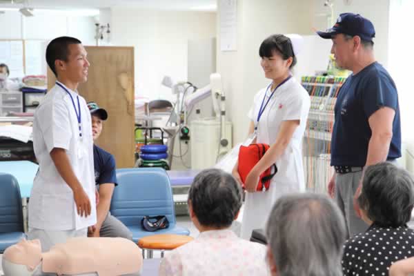 今年は看護師体験の高校生にも講習会に参加してもらい、AEDのことを知ってもらいました。